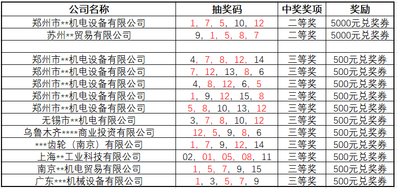 本次活動(dòng)中獎(jiǎng)結(jié)果如下: